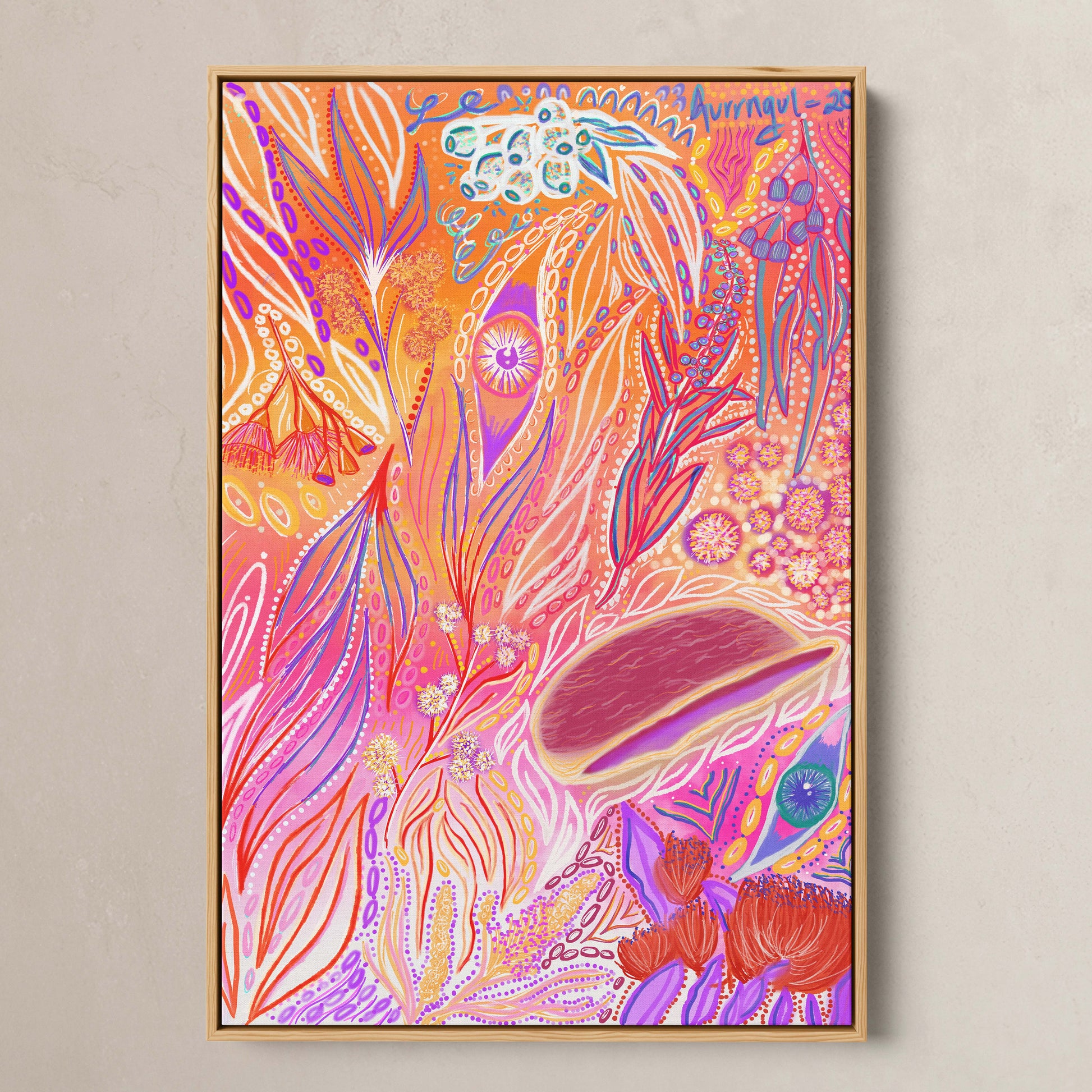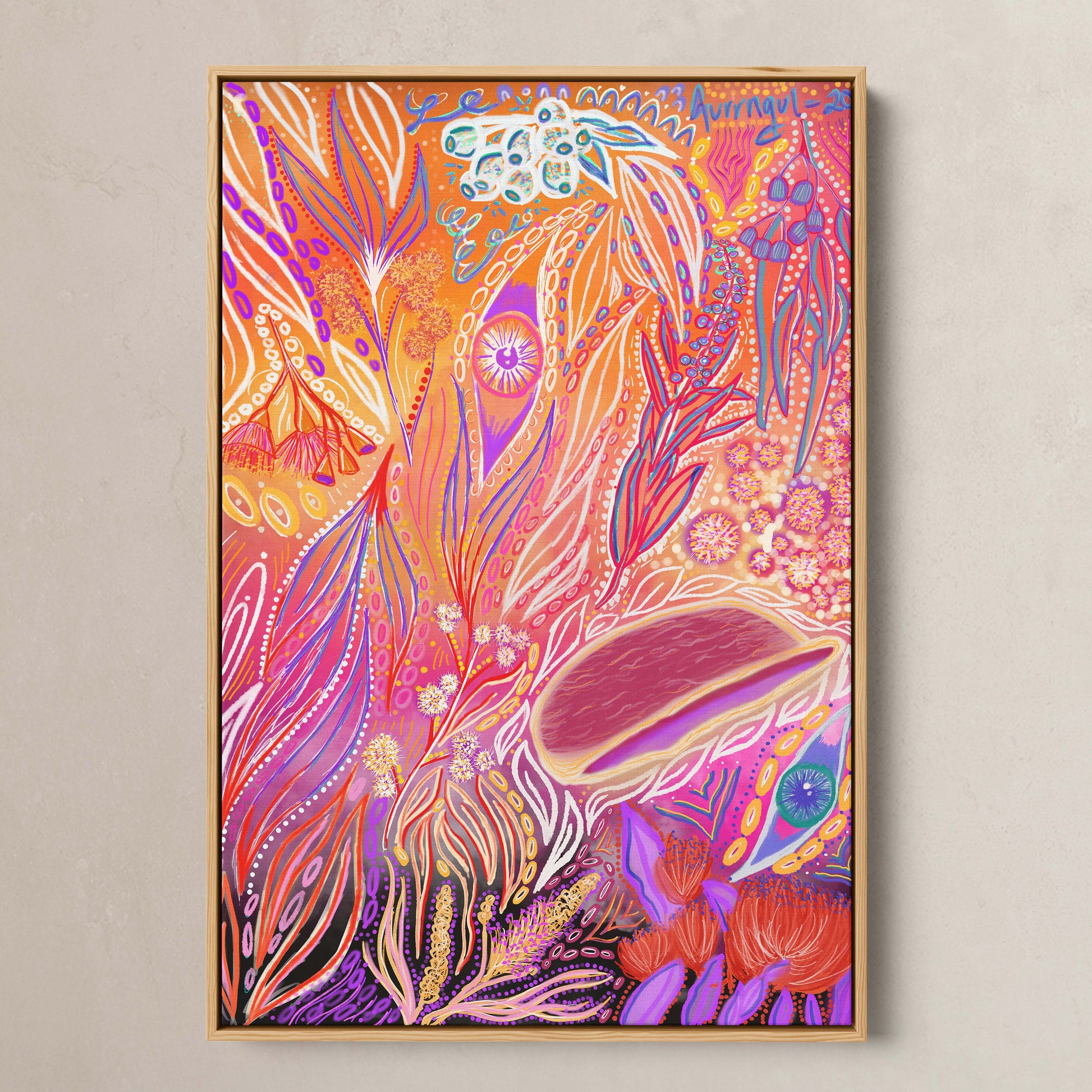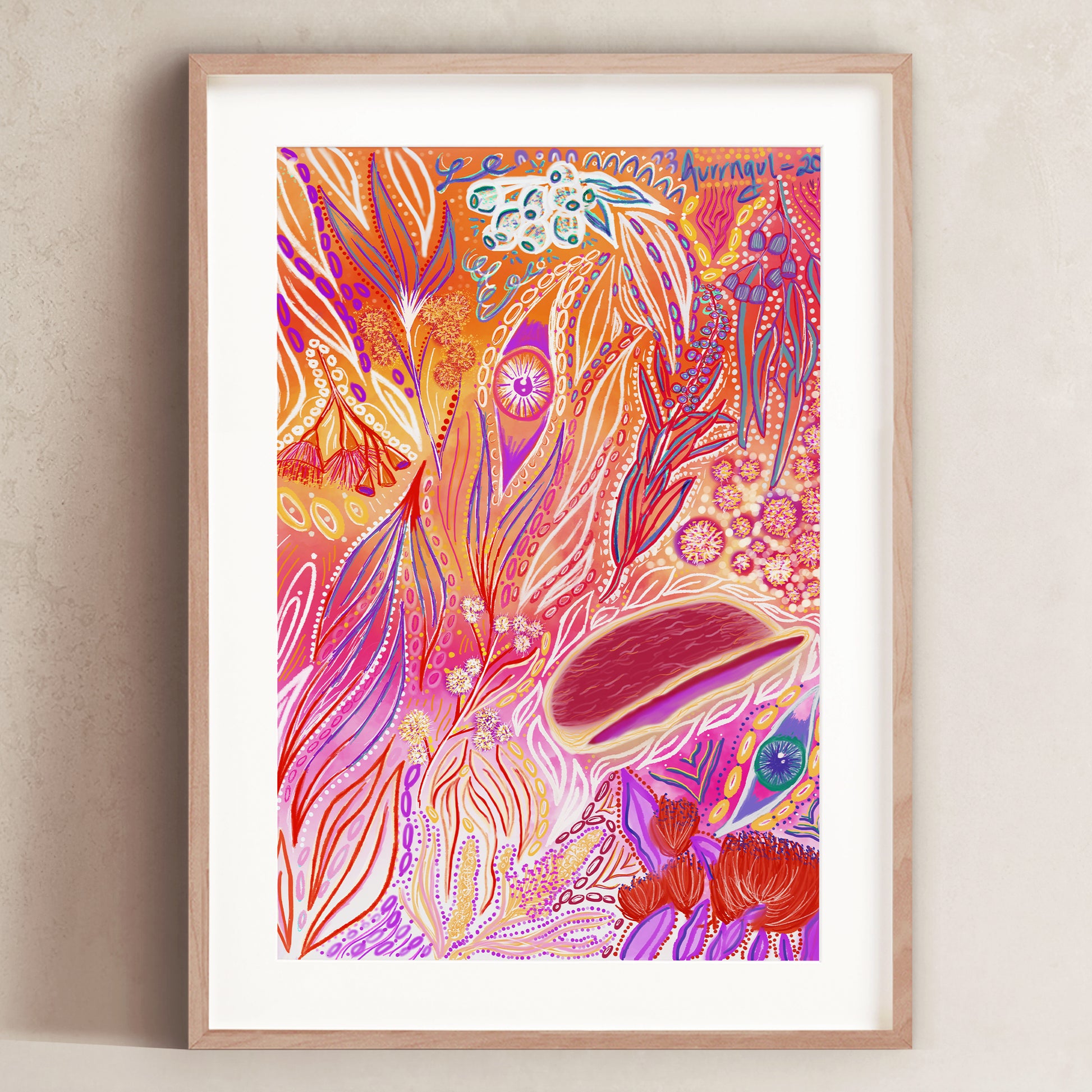 The land is referred to as our Mother because I believe she takes care of us and nurtures us.This art piece was inspired by just that - our Mothers. It was created not long after being on Binhdhi Warra Country with my two nannies & muma.